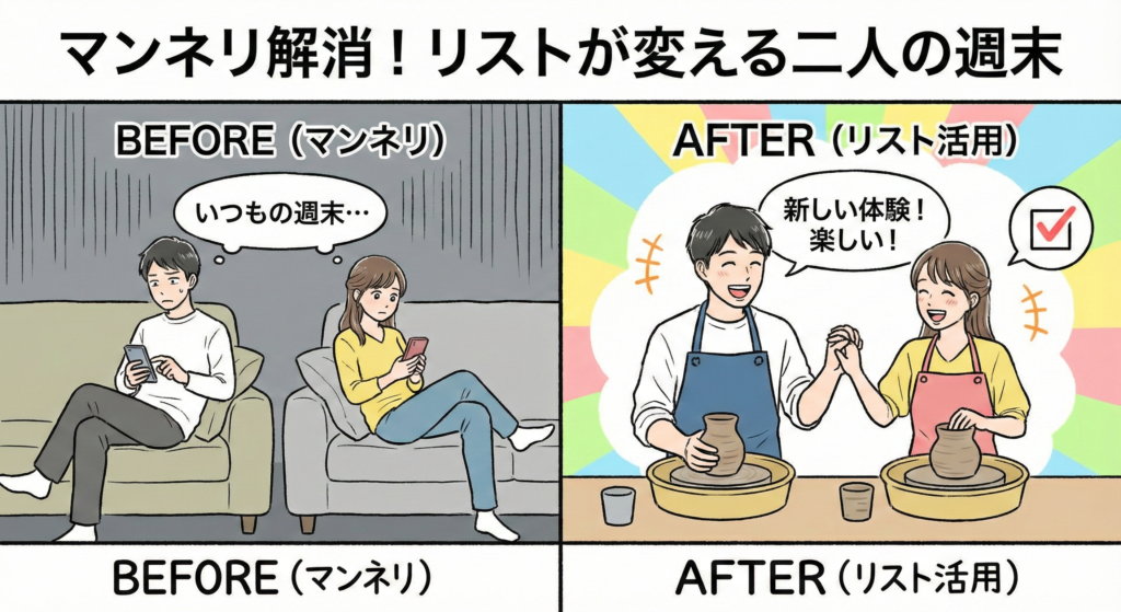「カップル やりたいことリスト 作り方」をマスターしてリストを運用することで、「次はこれをしよう」という共通の目的が常に存在することになります。これにより、週末の予定が「とりあえずいつもの場所」になるのを防ぎ、新鮮な刺激を二人で共有できるようになります。