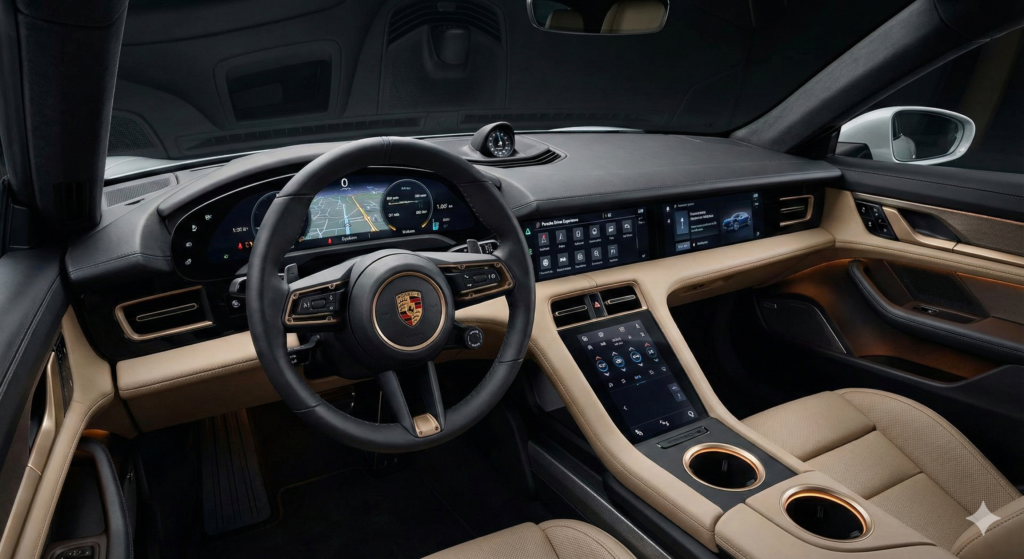 インテリアにおける最大のトピックは、アナログタコメーターの廃止です。12.6インチのフルデジタルディスプレイとなり、伝統的な5連メーターのデザインを踏襲しつつも、ナビゲーションマップの表示など、多彩なレイアウトが可能になりました。これには賛否があるかもしれませんが、機能性を追求するポルシェらしい進化と言えるでしょう。