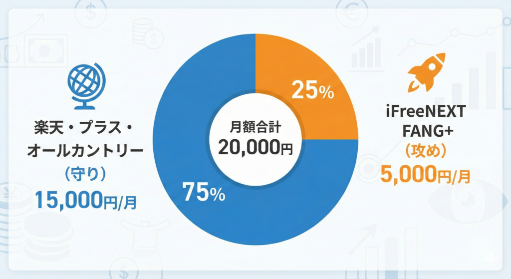 私の積立設定:月2万円の「攻めと守り」の配分