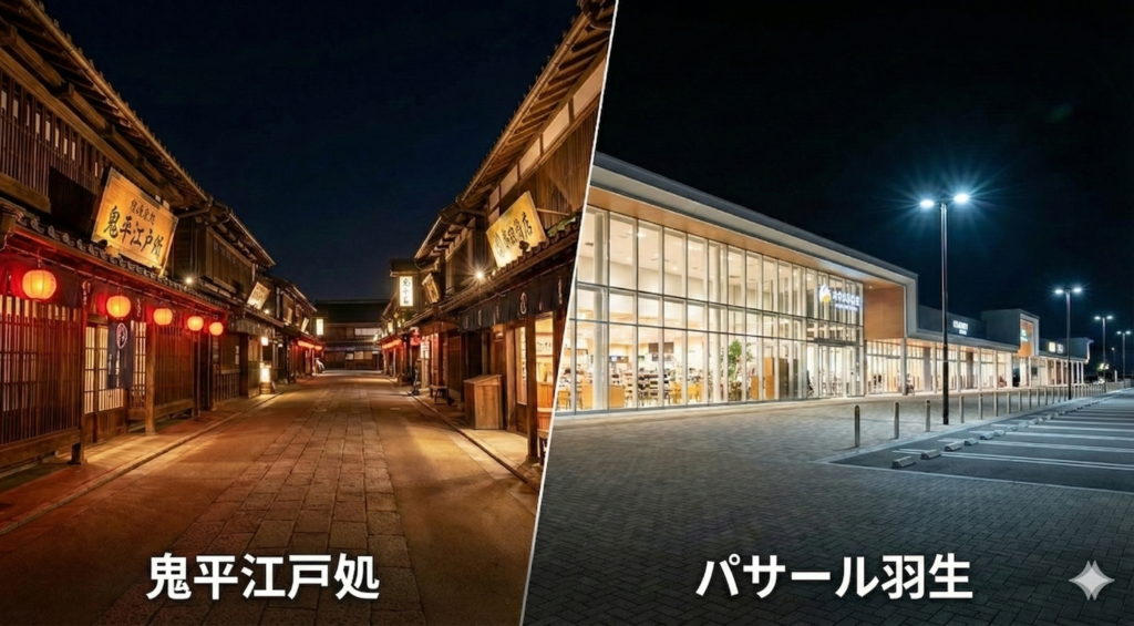 「江戸時代にタイムスリップしたような情緒を楽しみたいか」「最新のデパ地下のような利便性を求めるか」によって、車中泊のスタイルを選べるのが羽生パーキングエリアの醍醐味です。