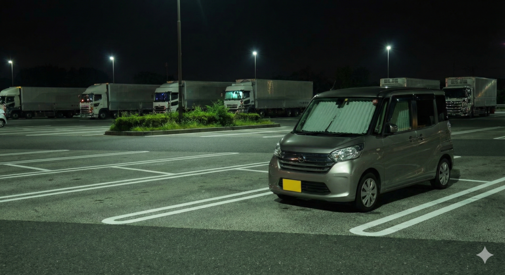 - 大型車エリアとの距離: 大型車のアイドリング音が響きやすいため、普通車専用エリアの中でも、できるだけ大型車用駐車スペースから離れた場所を選ぶのが、羽生パーキングエリアで車中泊を成功させるコツです。