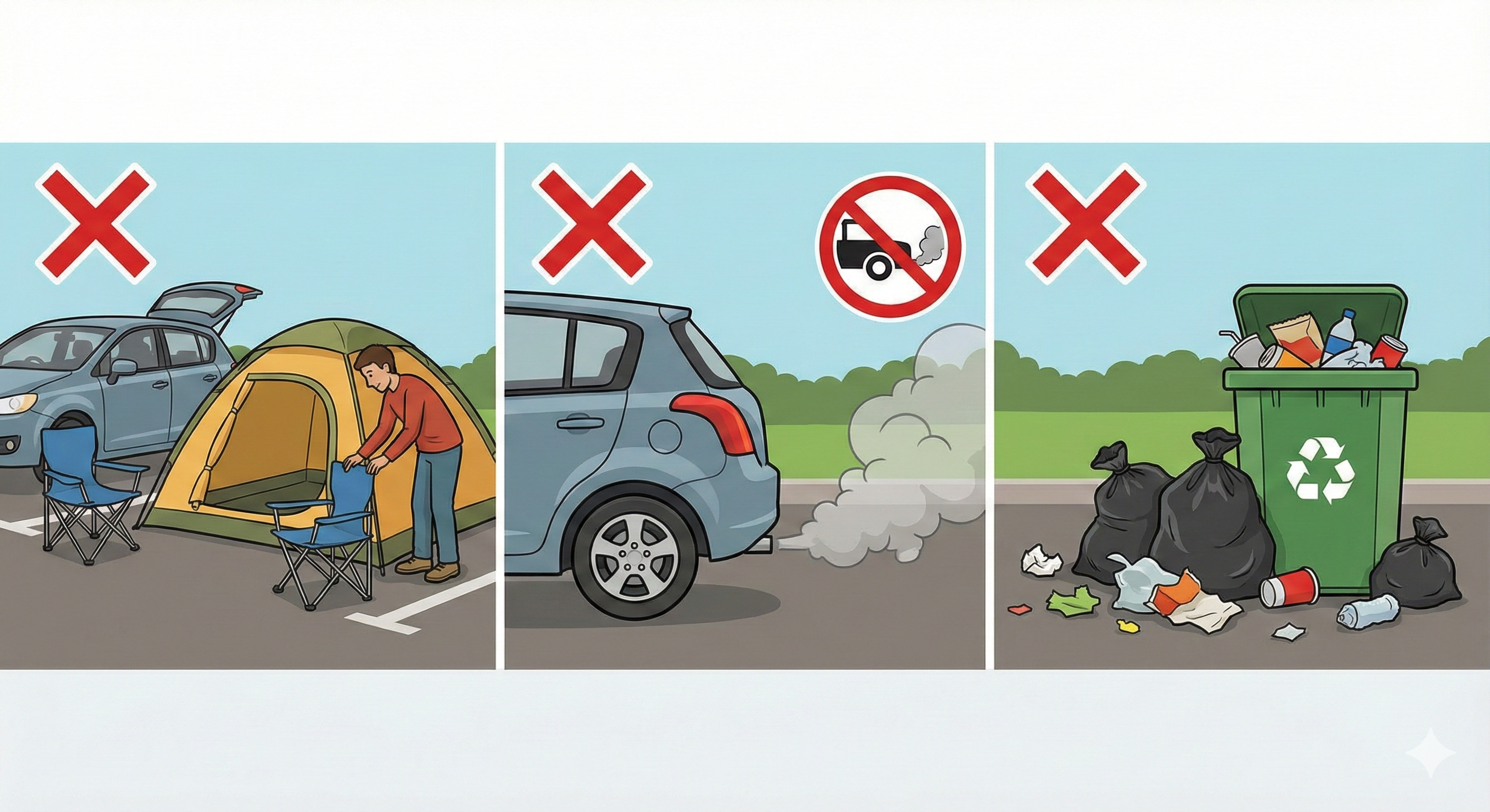 パーキングエリアは宿泊施設ではなく、あくまで「休憩施設」です。近年、車中泊ブームとともにマナー問題が取り沙汰されることも増えています。羽生パーキングエリアでの車中泊を長く楽しみ続けるために、以下のルールを厳守しましょう。