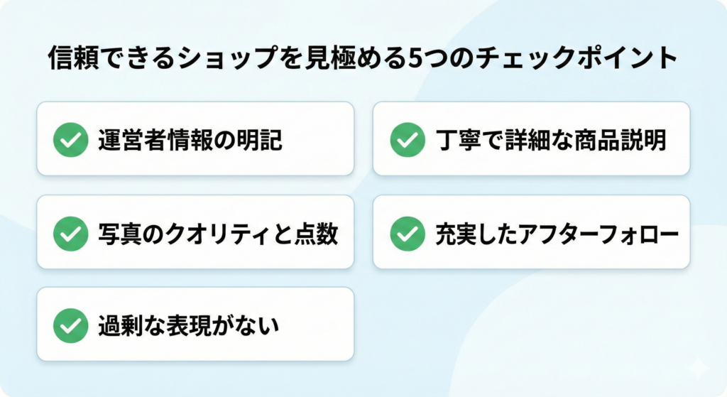 - 信頼できるショップを見極めること