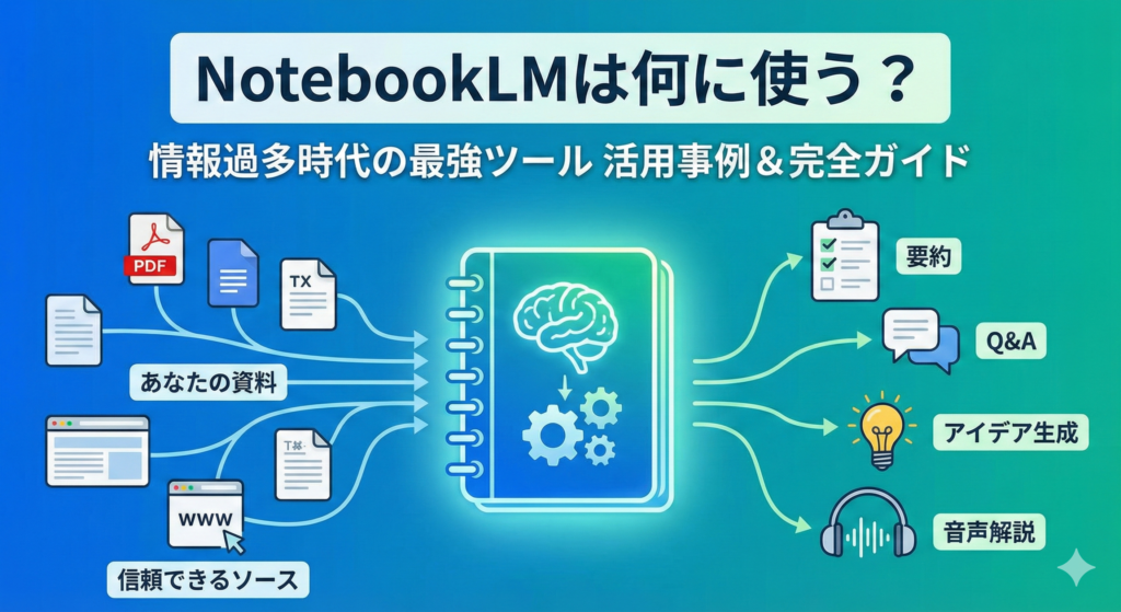 はじめに:情報過多の時代、NotebookLMは何に使うべきか? 現代は情報で溢れかえっています。仕事の資料、長文のPDFレポート、研究論文、そして日々更新されるウェブサイトの記事。私たちはこれらを読み、理解し、活用しなければなりません。しかし、「読... -