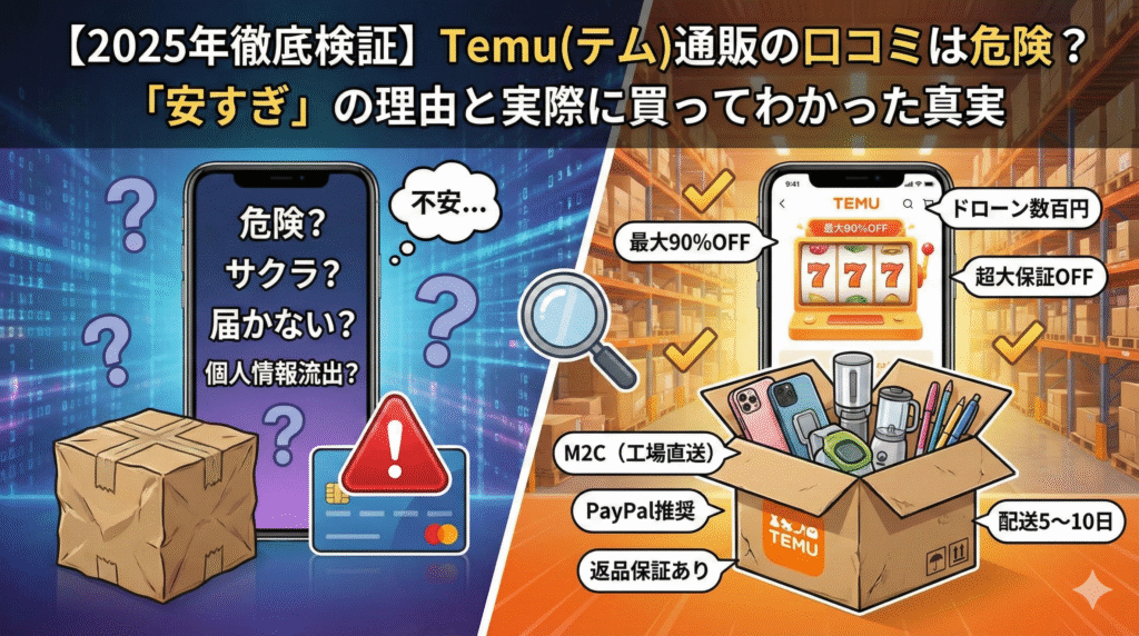 【2025年徹底検証】テム(Temu)ジャパン通販の口コミは危険?「安すぎ」の理由と実際に買ってわかった真実
